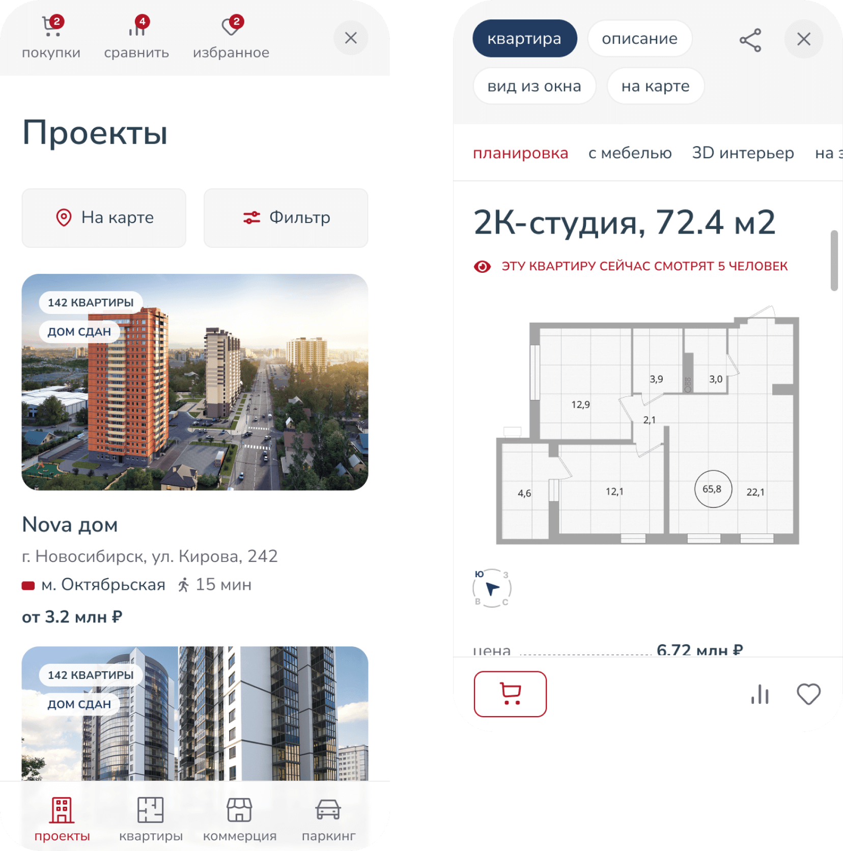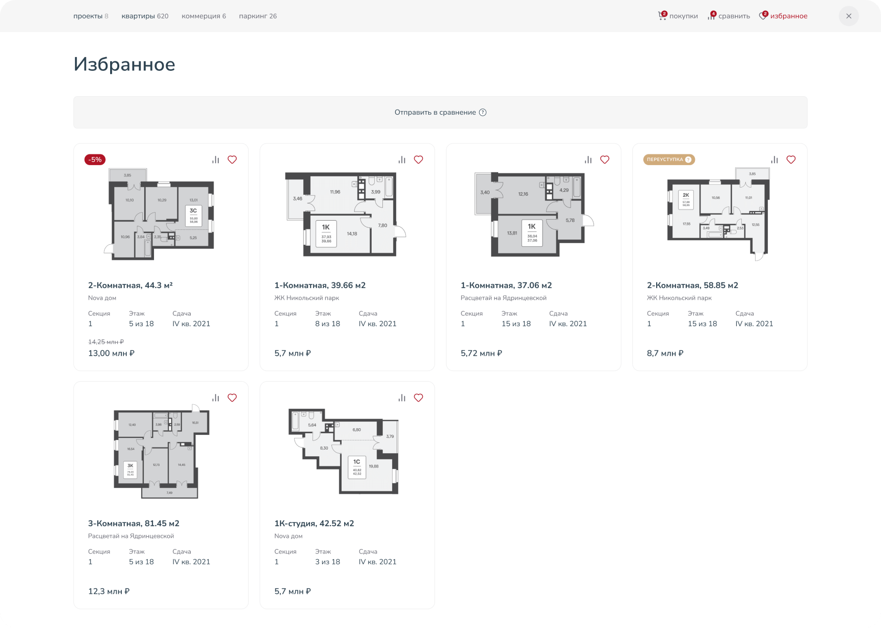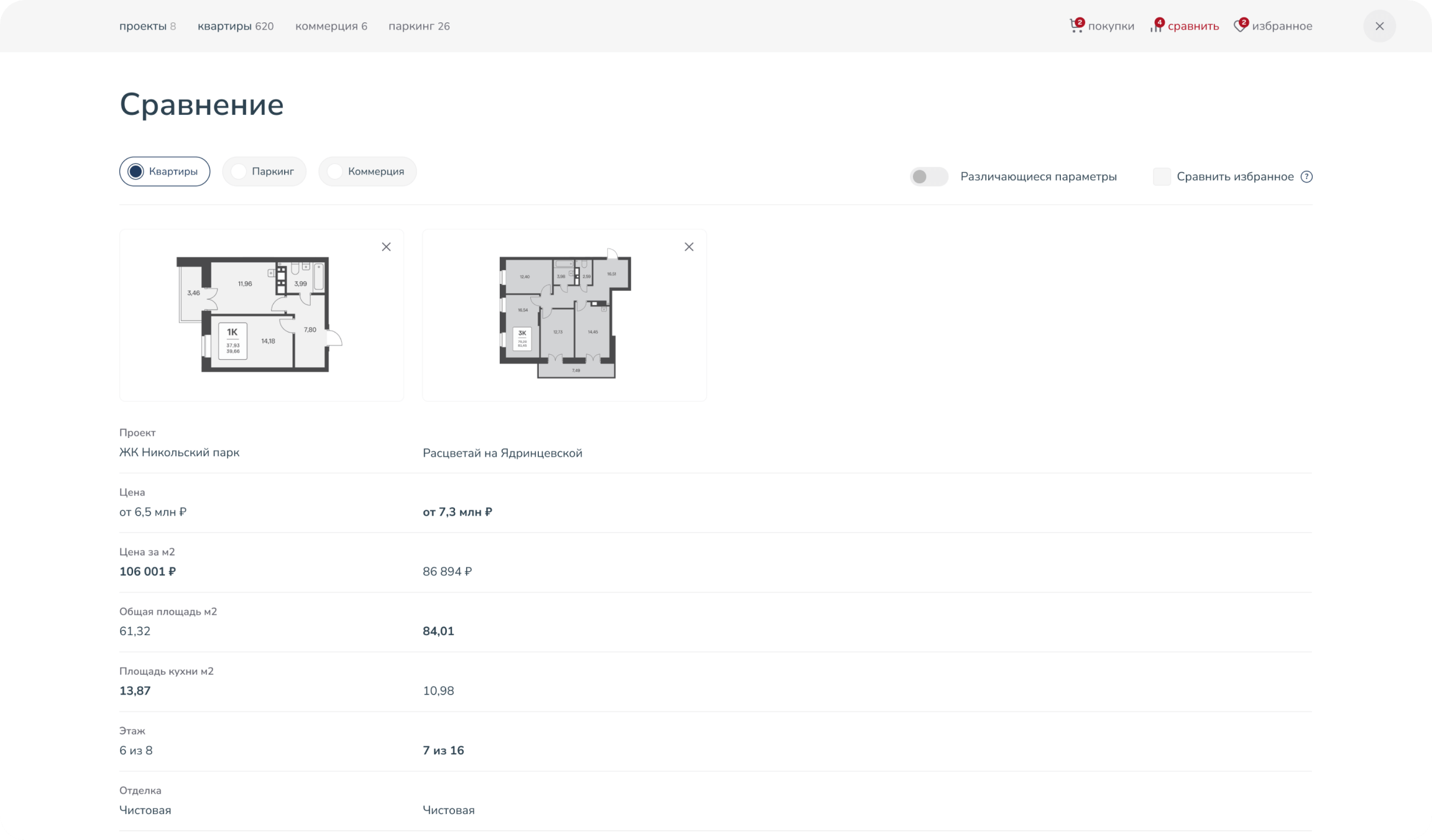 Здесь пользователь может сравнить параметры понравившихся объектов недвижимостипо аналогии как это работает в интернет-магазинах
